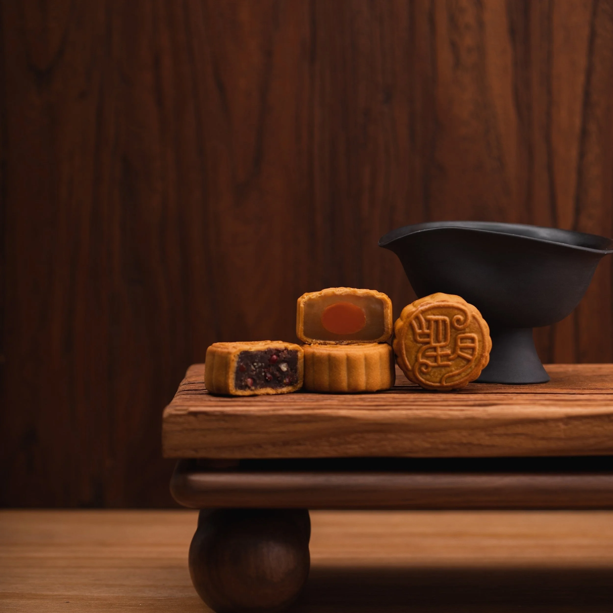 A creative twist on our signature custard mooncake, now with a luscious molten salted egg yolk center. One bite releases a rich, velvety lava that melts across your palate — indulgence you won’t forget.